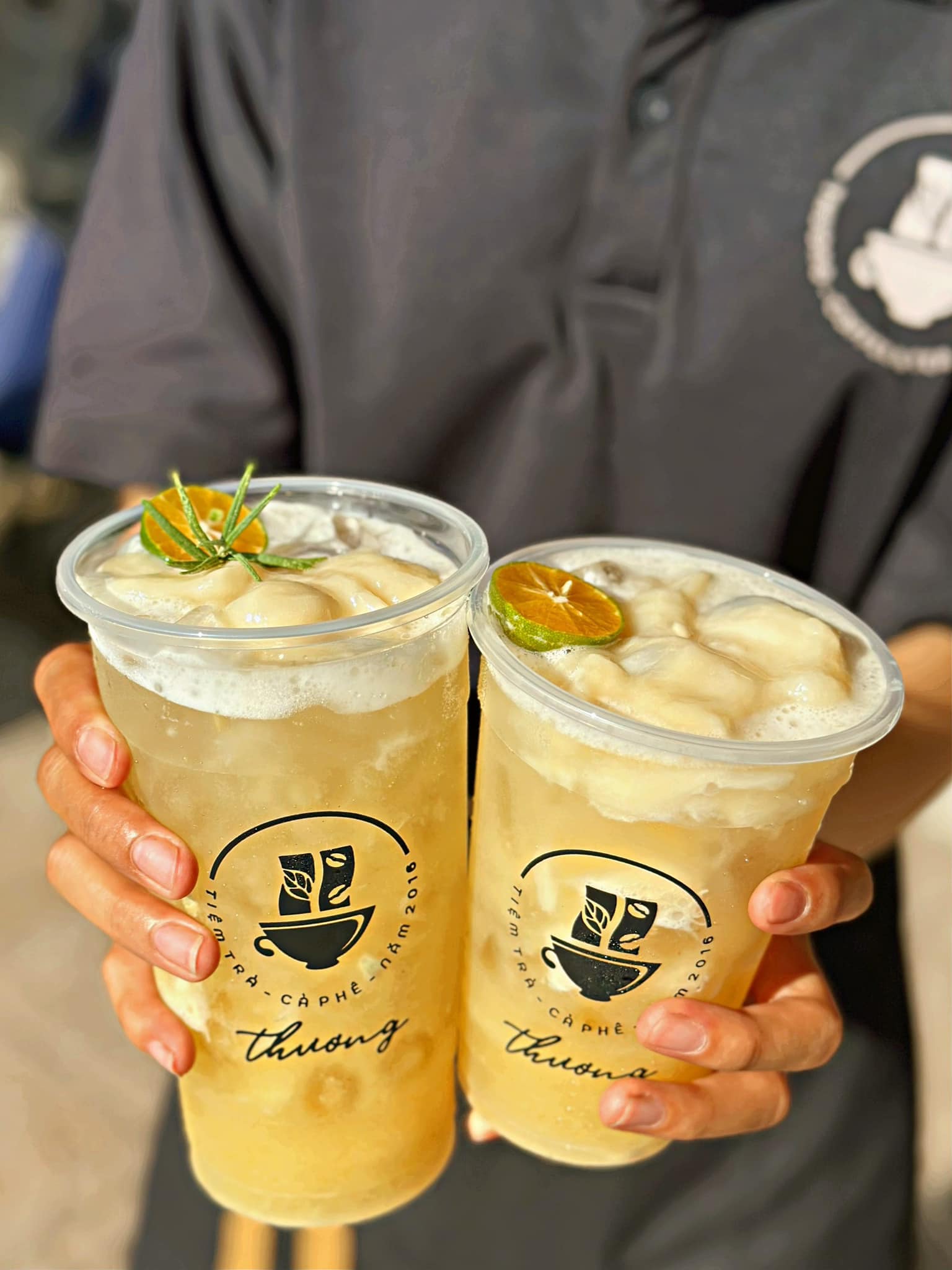 Bước 3: Rót ra ly, thêm đá viên và trang trí bằng lá húng lủi hoặc vài lát tắc.
